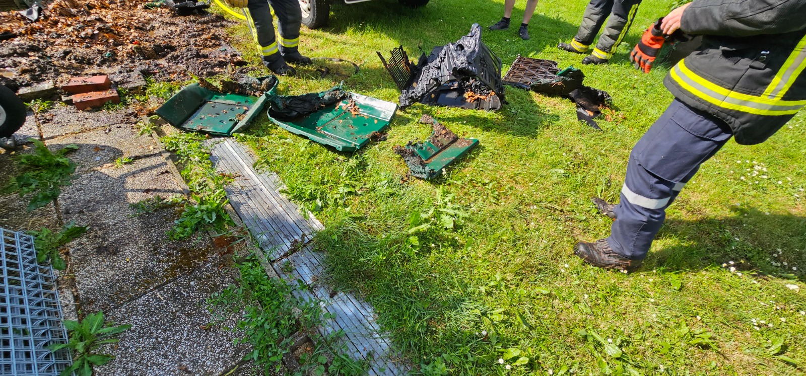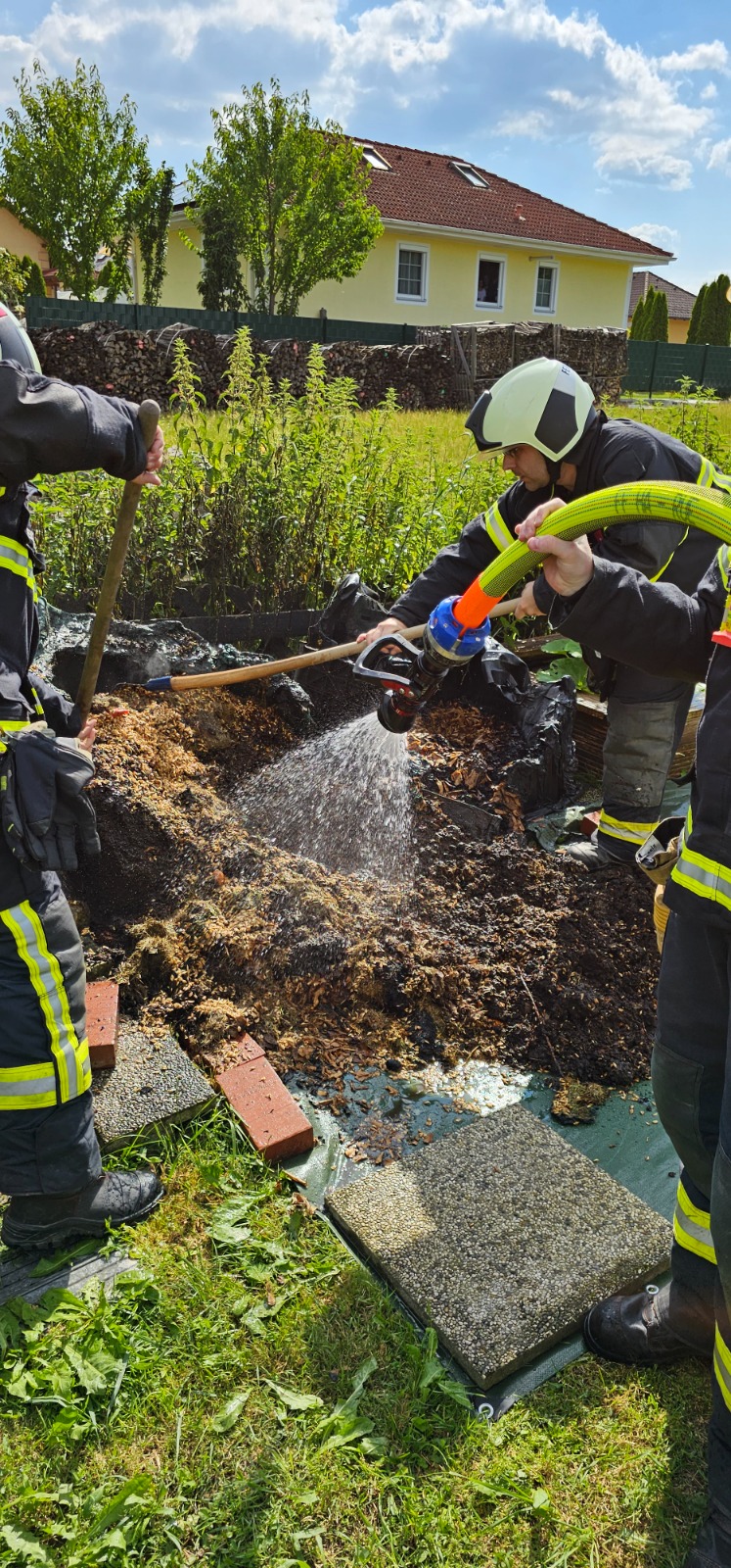 Am Einsatzort angekommen wurde ein brennender Komposthaufen festgestellt. Der Brand wurde bereits durch Passanten gelöscht. Aus diesem Grund waren nur noch Nachlöscharbeiten erforderlich.